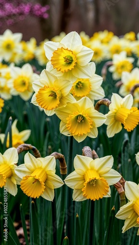 © Earl, Fototapeta premium Bright yellow daffodils blooming in early spring background for invitation or card screensaver