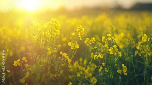 Fototapeta premium Bright Yellow Flowers in a Sunlit Field