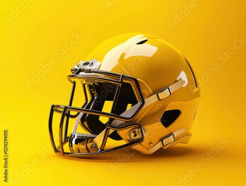 Fototapeta premium Bright yellow football helmet against a solid yellow background showcasing...