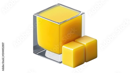 Obraz premium Bright Yellow Gel Cube and Colorful Gelatin Square on a Transparent Surface