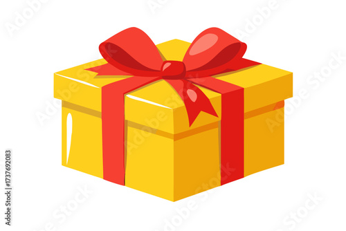 Obraz premium Bright yellow gift box tied with a red ribbon and bow