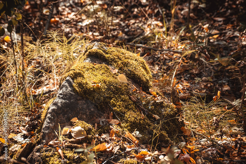 © savelov, Obraz premium Bright yellow moss on the stone