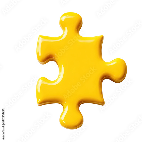 © Sunny_nsk, Obraz premium Bright Yellow Puzzle Piece on White Background, png clipart element with transparency