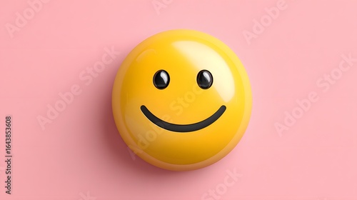© benjamas, Fototapeta premium Bright Yellow Smiley Face Icon on a Soft Pink Background Evoking Happiness and Positivity