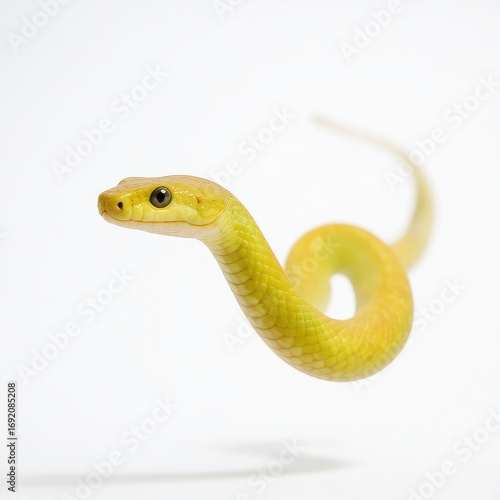 Fototapeta premium Bright yellow snake effortlessly floating against a plain background,...