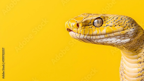 © Teerapat, Fototapeta premium Bright Yellow Snake on Vibrant Yellow Background