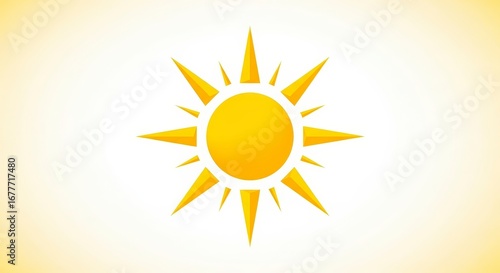 © Manji, Fototapeta premium Bright Yellow Stylized Sun Graphic with Geometric Rays Shining on a White Background