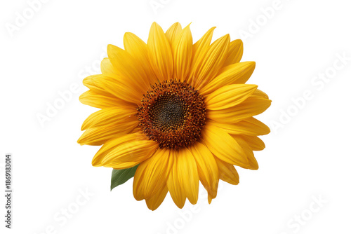 © QBeStock, Fototapeta premium Bright yellow sunflower bloom with dark brown center on black background blossom