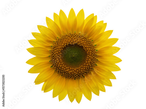 Fototapeta premium Bright yellow sunflower bloom with detailed center and petals isolated on...