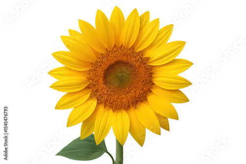 © Krtola , Obraz premium Bright yellow sunflower blossom with deep brown center, isolated on clean white background, representing summer botanical beauty