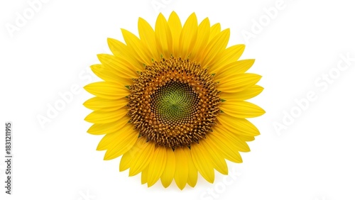 © Omar, Fototapeta premium Bright yellow sunflower head isolated on a white background