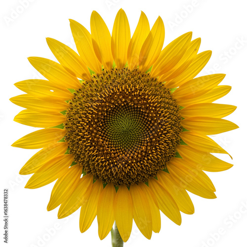 Fototapeta premium Bright yellow sunflower head isolated on transparent background