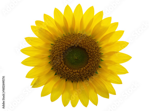 Fototapeta premium Bright yellow sunflower head with intricate seed center isolated on...