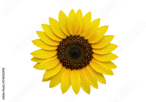 © Lily, Fototapeta premium Bright yellow sunflower isolated on transparent PNG, vibrant summer flower with dark brown center for design and decoration
