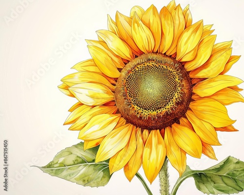 Fototapeta premium Bright yellow sunflower on a white background, vibrant colors, high contrast, detailed, realistic illustration
