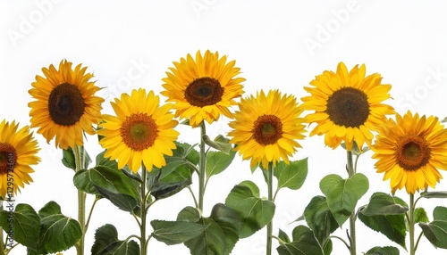 © Rahmat , Fototapeta premium Bright yellow sunflower stems with green leaves