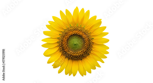 © khaledSaifulllah, Fototapeta premium Bright yellow sunflower with a detailed green and brown center, cutout, PNG isolated on white or transparent background