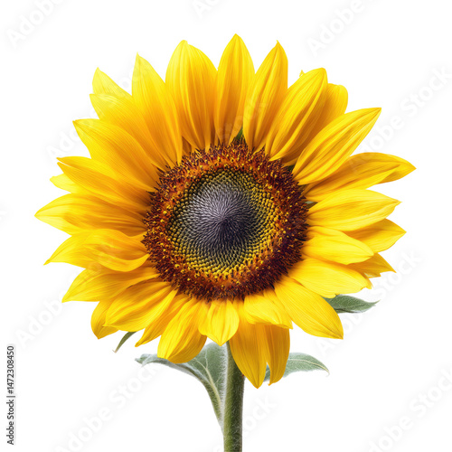 Fototapeta premium Bright yellow sunflower with dark center in full bloom on transparent background