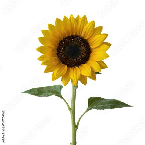 © NguyenThi, Obraz premium Bright Yellow Sunflower With Green Stem and Leaves