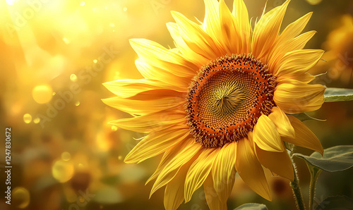 © Sekai, Fototapeta premium Bright Yellow Sunflower with Hyper-Detailed Soft Glow, Capturing the Warmth and Beauty of the Flower