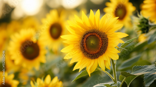 Fototapeta premium Bright Yellow Sunflowers in Full Bloom
