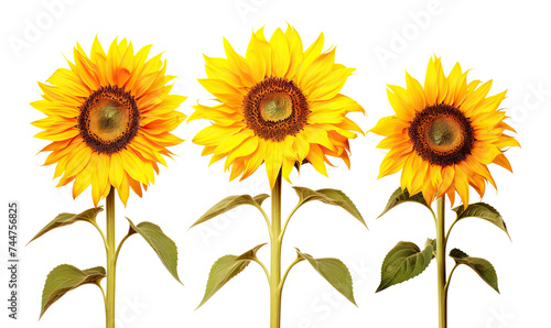 Fototapeta premium Bright yellow sunflowers in full bloom, cut out