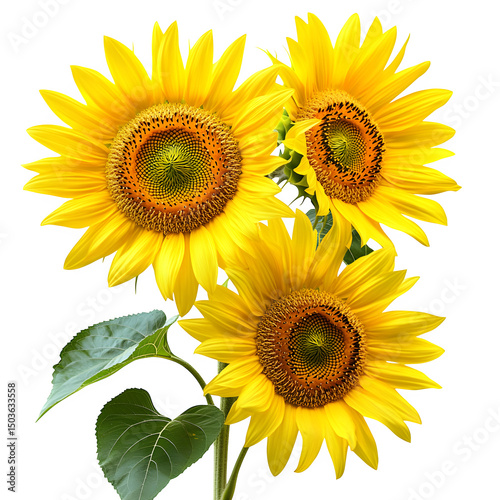 Obraz premium Bright yellow sunflowers in full bloom, isolated