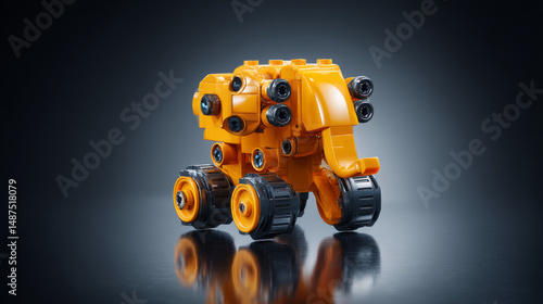 Fototapeta premium Bright yellow toy elephant made of blocks, showcasing creativity and...