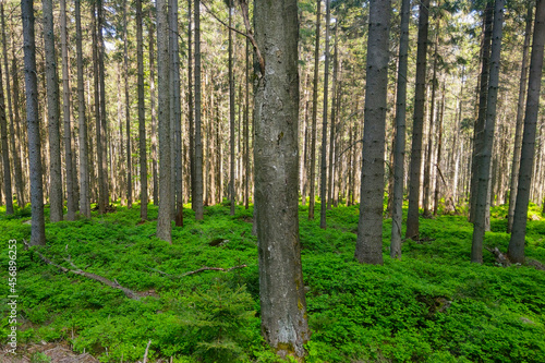 © Dzmitry, Fototapeta premium Bright young green forest in spring or summer.
