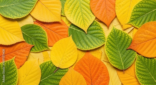 Fototapeta premium Brightly Colored Autumn Leaves Creating Natural Pattern