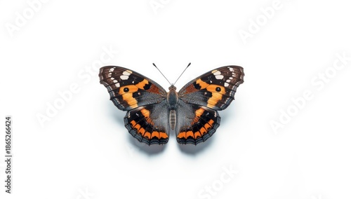 Fototapeta premium Brightly colored butterfly on a white backdrop, suitable for editorial header...