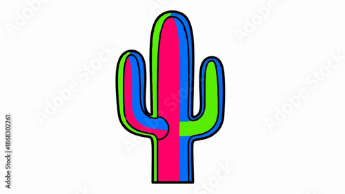 Obraz premium Brightly colored cactus shape with bold black outline