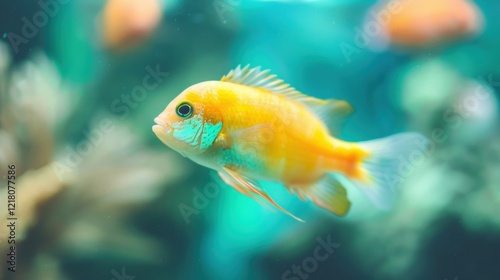 Naklejka premium Brightly colored fish glide through a well-maintained aquarium teeming with...