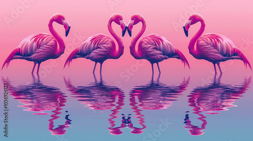 © Graphic Resources, Fototapeta premium Brightly colored flamingos illustration