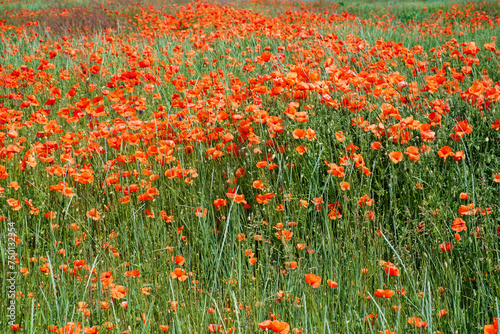 Fototapeta premium Brightly colored flowers fill the entire landscape.