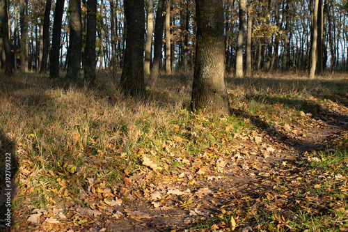 Fototapeta premium Brightly colored forest in autumn at sunset