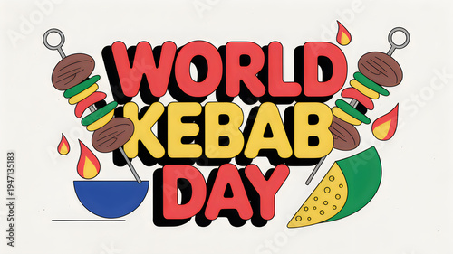 Fototapeta premium Brightly colored illustration celebrating World Kebab Day with skewers and...