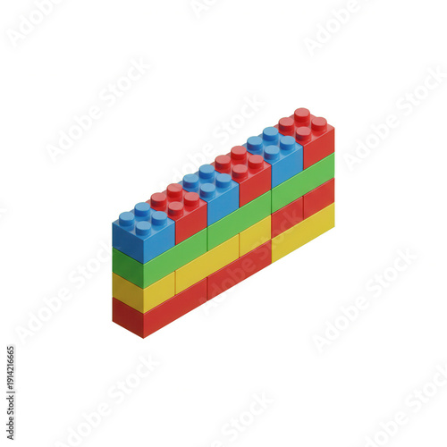 © Dung, Obraz premium Brightly Colored Plastic Toy Building Blocks Wall Structure