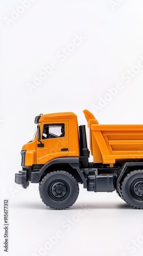© pvl0707, Fototapeta premium Brightly colored plastic toy truck with a large bucket isolated on white