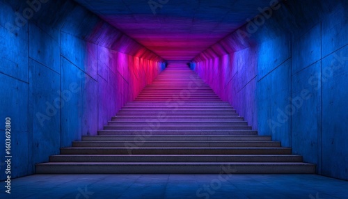 © InkCrafts, Fototapeta premium Brightly lit staircase in a modern architectural design.