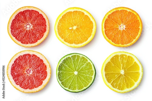 Fototapeta premium Brightly sliced citrus fruits display vibrant colors and fresh textures on a clean background