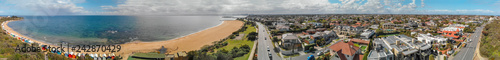 © jovannig, Fototapeta premium Brighton Beach's Beach Boxes, aerial panoramic view in winter