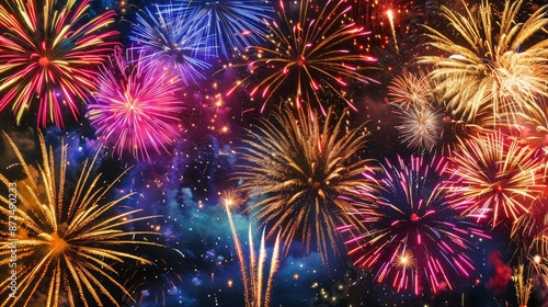 Naklejka premium Brilliant colors of fireworks lighting up the night sky