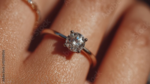 Obraz premium Brilliant diamond engagement ring displayed on a hand in natural sunlight...