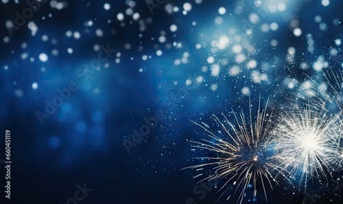 Fototapeta premium Brilliant fireworks against a wintry blue backdrop.