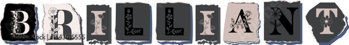 Obraz premium BRILLIANT Floral Typography of a Concept Word � Elegant Torn Paper Letter Design