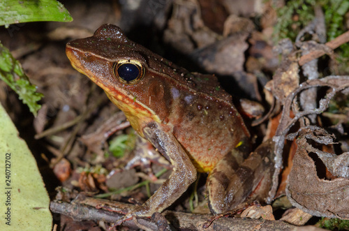 © salparadis, Naklejka premium Brilliant Forest Frog (Rana warszewitschii) in a tropical rainforest, Costa Rica