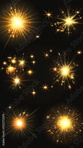 Naklejka premium Brilliant golden sparkling light bursts on black background