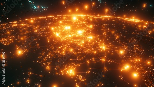 Naklejka premium Brilliant illuminated view of the world showing energy networks overlaid on a...