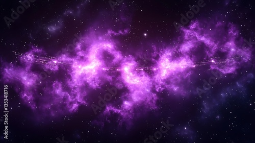 Naklejka premium Brilliant purple nebula with stars and distant space station